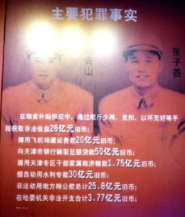 刘青山却在公馆里挥霍无度,单是他个人贪污挥霍的公款就有1.84亿元旧币,按当时粮价能买110多万斤小米,够3000多名干部吃一年。