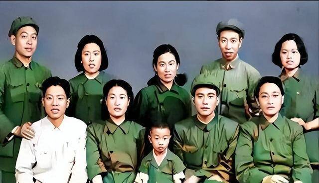 一张五十年代初的全家福合影,透着寻常人家难及的富足,照片中男人穿笔挺中山装,翘着二郎腿,女人身着利落军装,看起来光鲜亮丽。