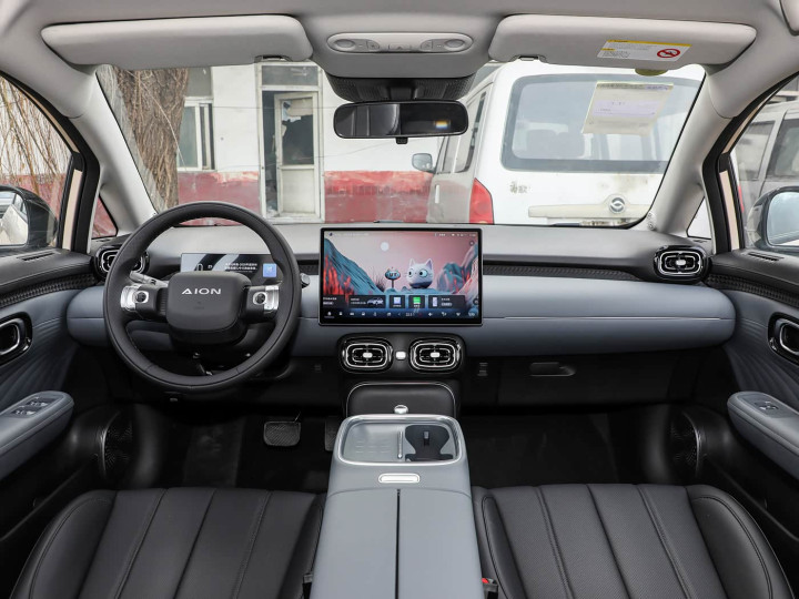 进入车内,2026款AION UT super sport版内饰主打运动简约风,以驾驶者为中心打造环抱式座舱,中控台采用分层式设计,14.6英寸悬浮式中控屏+8.8英寸全液晶仪表组成双联屏,界面清晰、操作流畅,搭载AI智能车机系统,支持语音控制、华为HiCar、无线CarPlay,而双辐多功能运动方向盘,握感舒适,按键布局合理;半开放式中央扶手设计,解放腿部空间,储物布局更人性化,全车多处储物格轻松收纳手机、水杯等杂物。2750mm超长轴距带来越级乘坐空间,身高180cm乘客前排头部空间充足,后排腿部仍有一拳余量,后排横向空间达1385mm,满载三人也不拥挤。