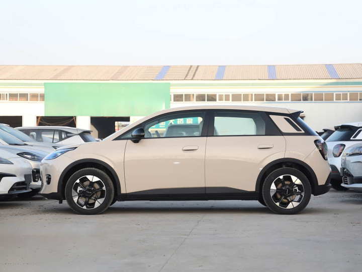 再来看车身侧面部分,AION UT super 2026款 sport版展现出优雅与动感的融合。4270×1850×1575mm的车身尺寸搭配2750mm的轴距,在保证车内宽敞空间的同时,也让车身比例更加协调。腰线从前翼子板出发,贯穿车门把手直至车尾,形成一条流畅的上扬曲线,搭配车顶微微下倾的设计,营造出向前冲刺的动态美感。车门下方的凹陷设计与五辐式刀锋造型轮毂相互映衬,进一步增强了车身的层次感与运动气息。半隐藏式机械门把手与双色轮圈的搭配,既降低了风阻,又提升了整车的精致感。